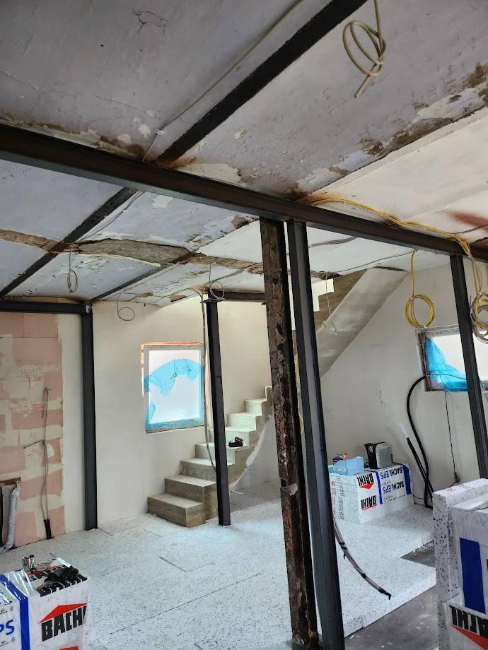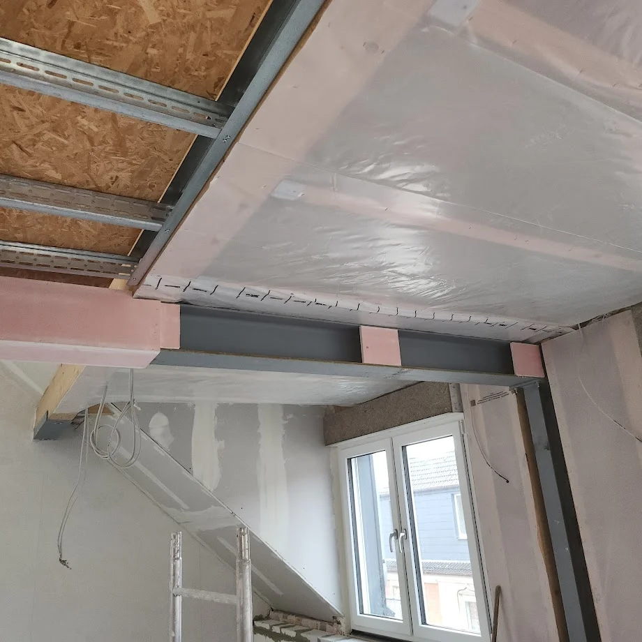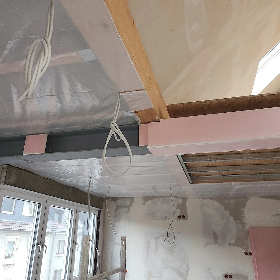 Der vorhandene Stahlträger wurde gemäß den brandschutztechnischen Anforderungen mit einer geprüften Brandschutzverkleidung zur Erreichung der Feuerwiderstandsklasse F90 ausgeführt. Die Bekleidung erfolgte mit nicht brennbaren Brandschutzplatten in ausreichender Schichtstärke. Alle Fugen, Stöße und Anschlüsse wurden fachgerecht geschlossen, sodass der Stahlträger vollständig umschlossen ist und im Brandfall für mindestens 90 Minuten vor unzulässiger Erwärmung geschützt wird.