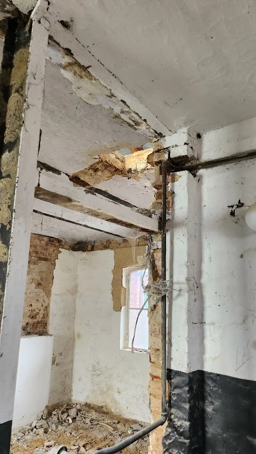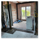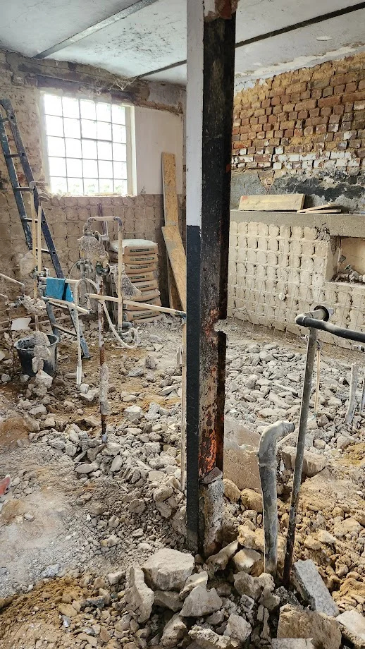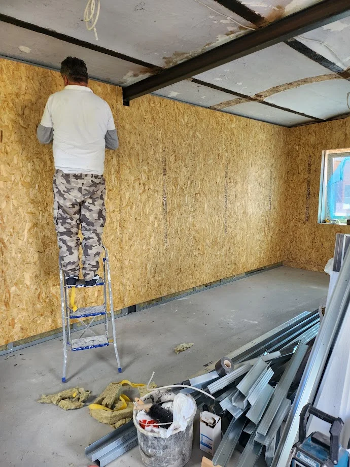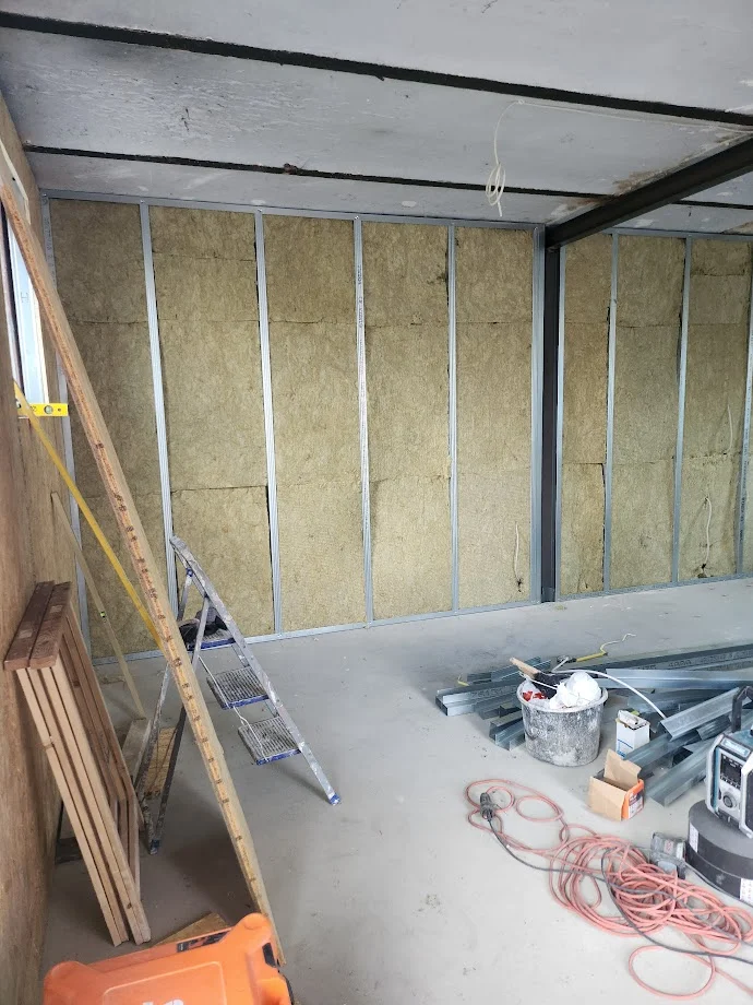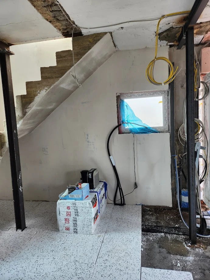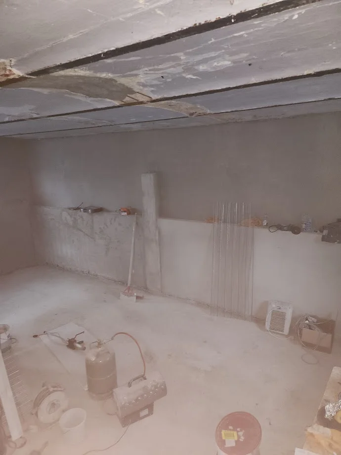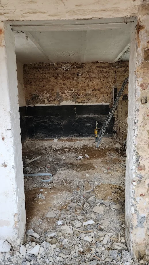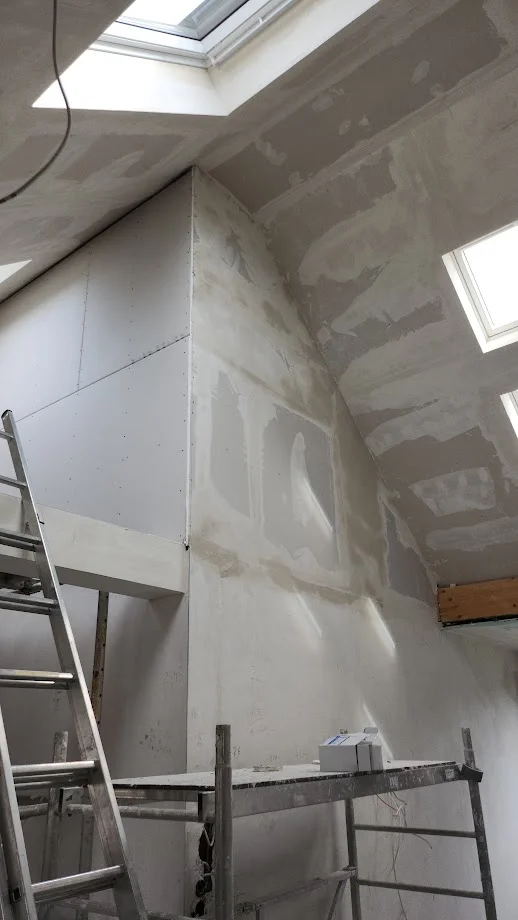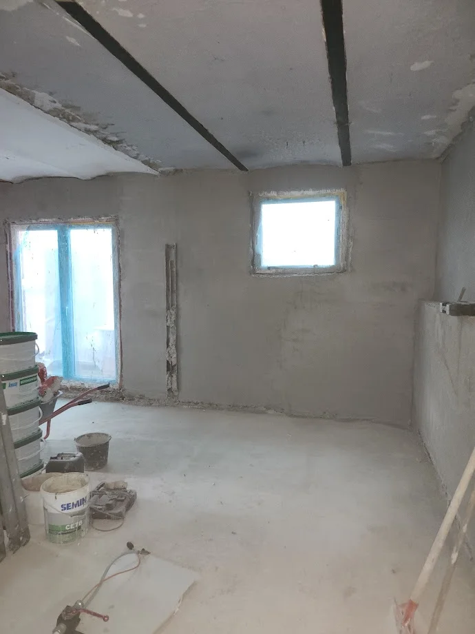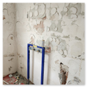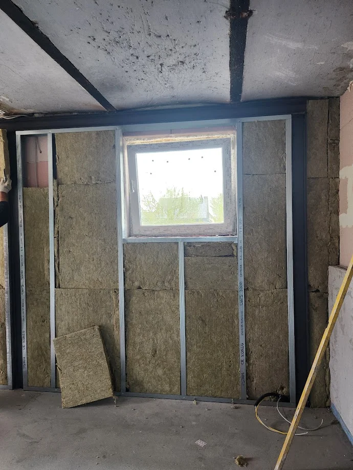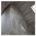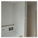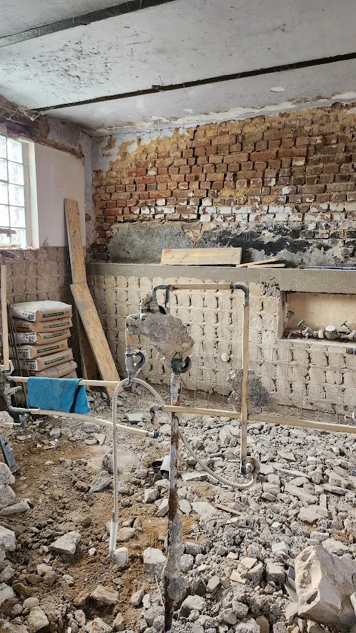 Die Wände wurden begradigt, teilweise neu beplankt und anschließend für die Fliesenarbeiten vorbereitet.