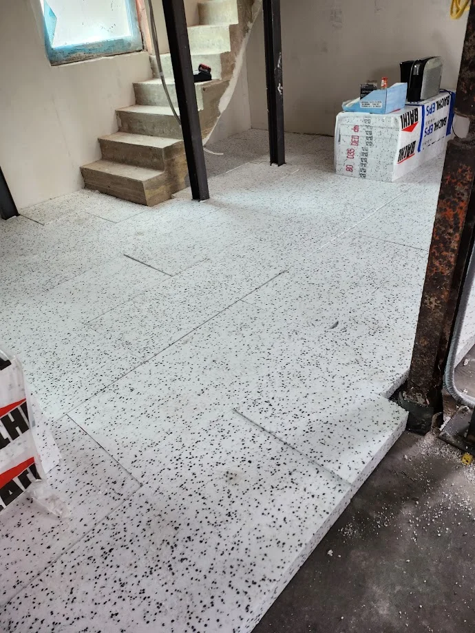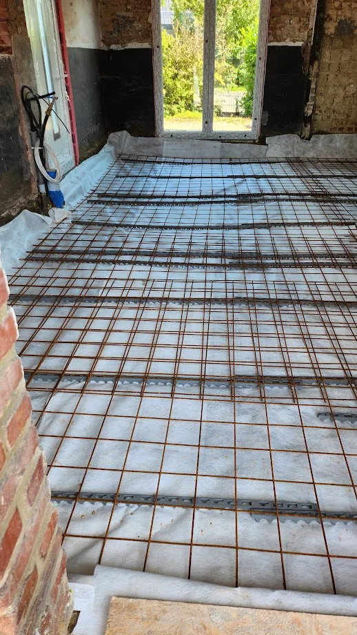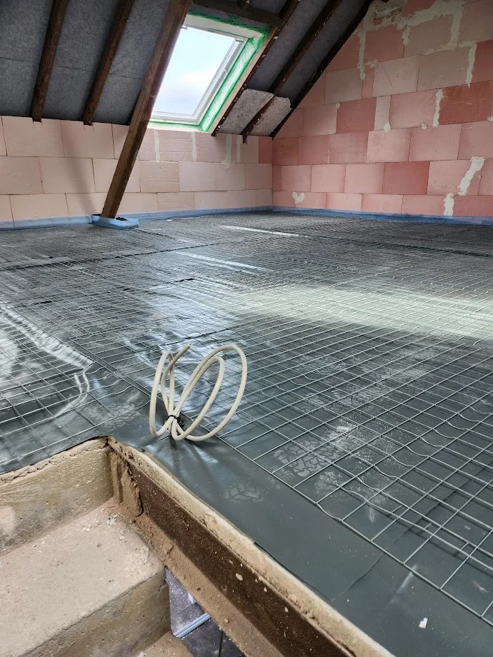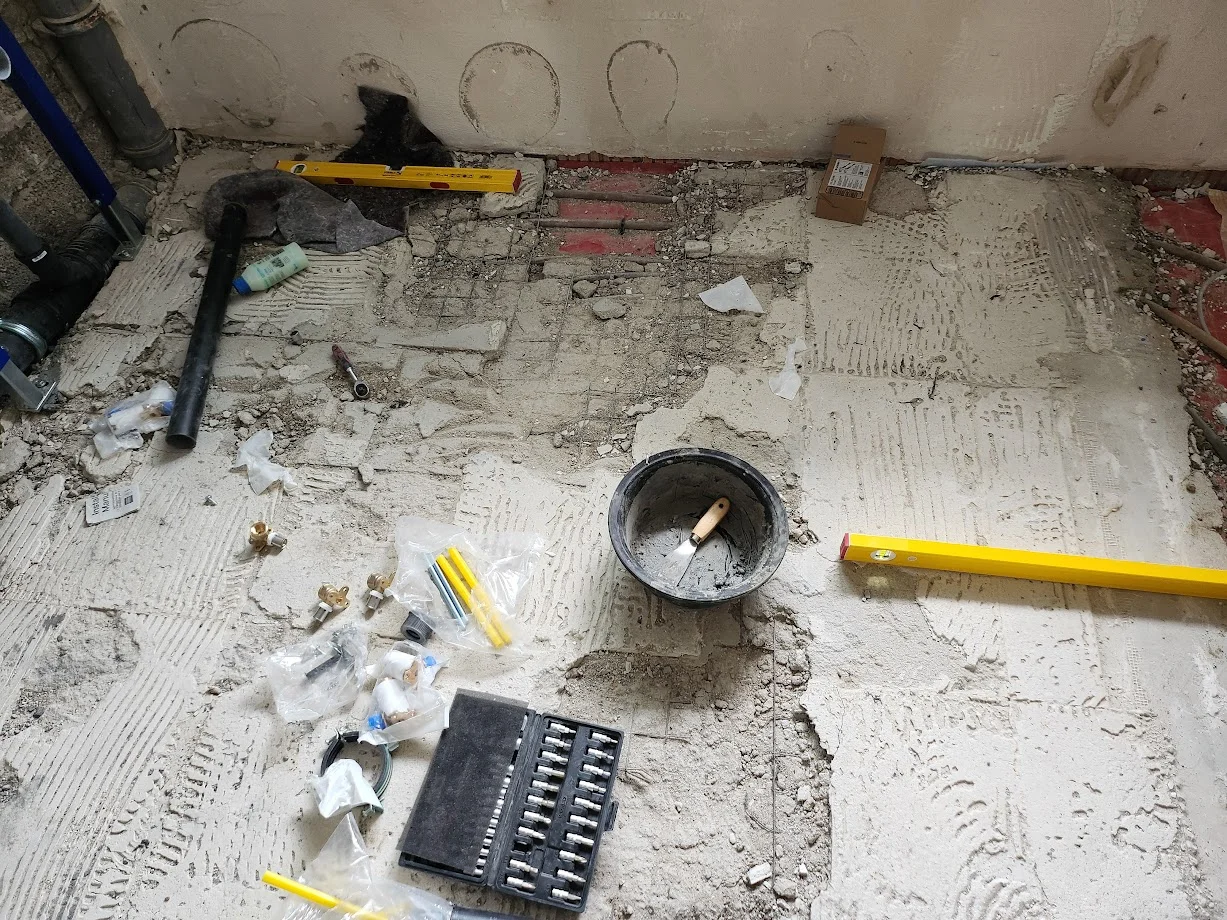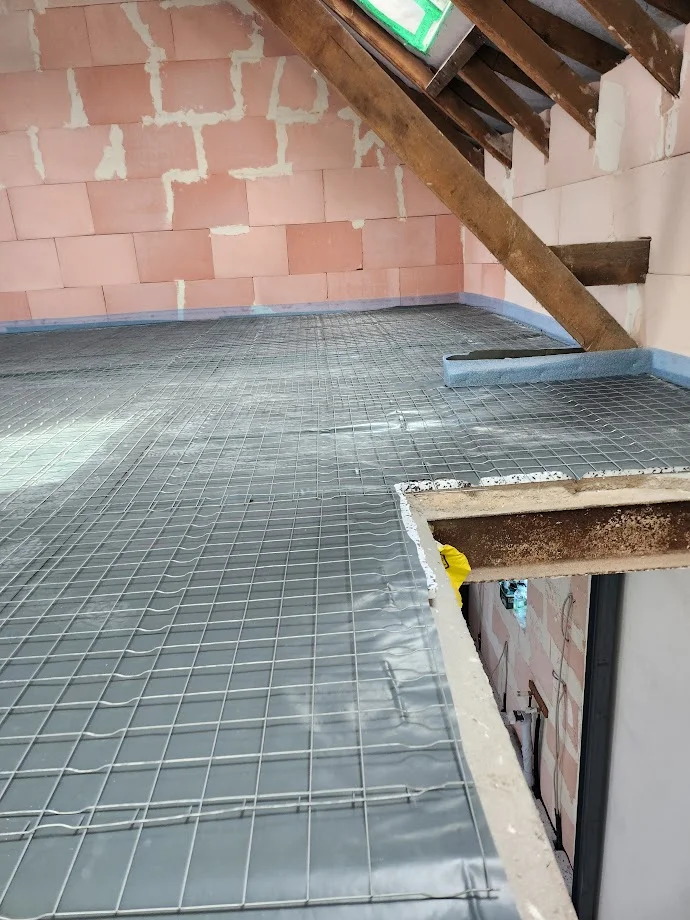 Ein zentraler Bestandteil der Sanierung war der Einbau einer neuen Fußbodenheizung, die für eine gleichmäßige und angenehme Wärmeverteilung im gesamten Bad sorgt.