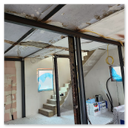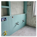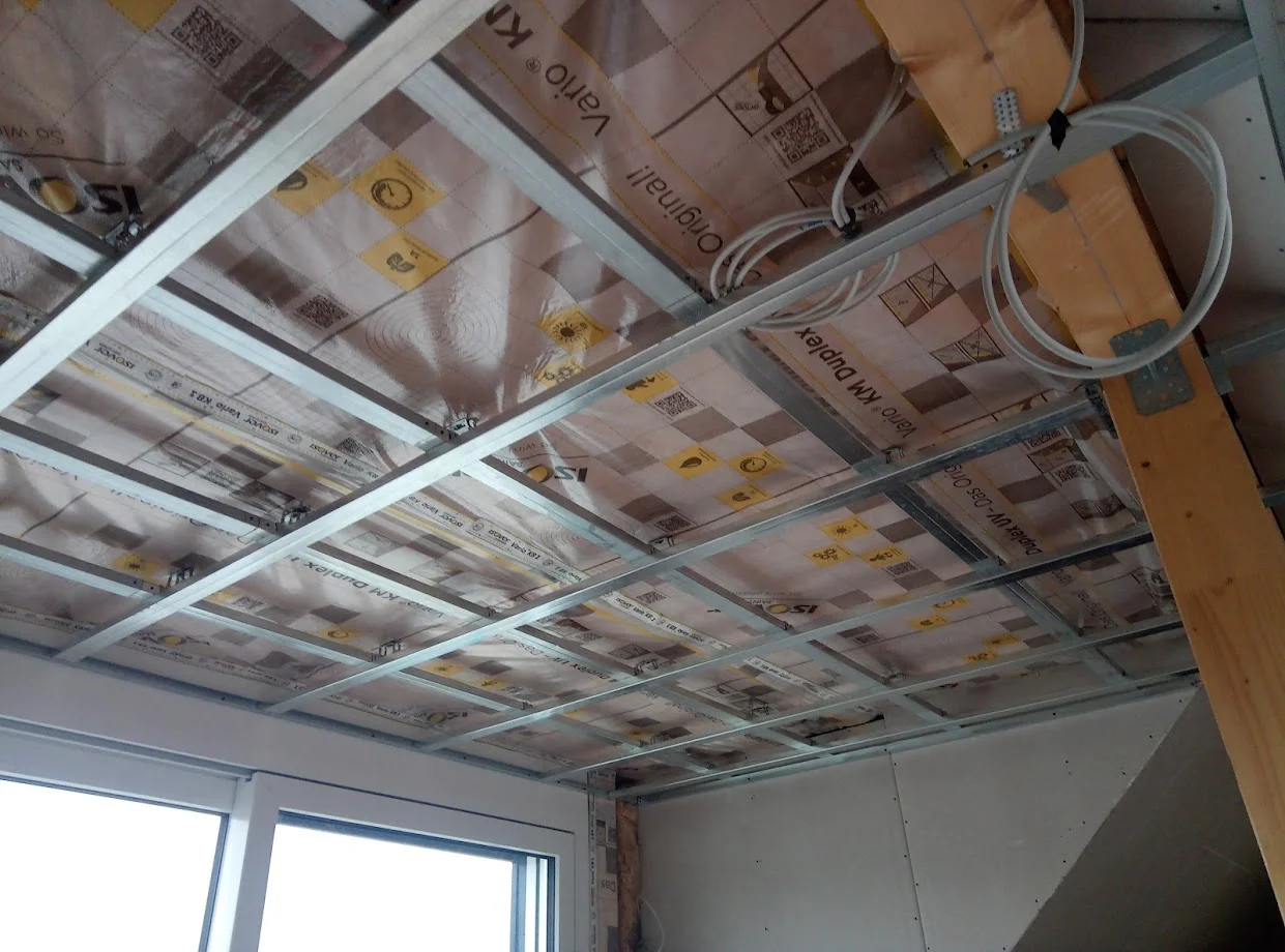 Elektroinstallationen wurden luftdicht in die Dampfbremse eingebunden. Die Unterkonstruktion sowie die Beplankung mit Gipskartonplatten wurden entsprechend den brandschutztechnischen Anforderungen ausgeführt. Durch den Einsatz nicht brennbarer bzw. schwer entflammbarer Baustoffe sowie einer geschlossenen Bekleidung wird ein wirksamer baulicher Brandschutz gewährleistet.