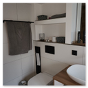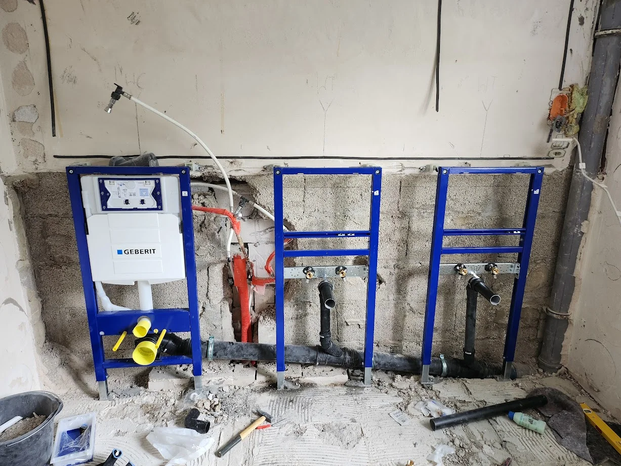 Die Sanitärinstallation erfolgte mit modernen Vorwandelementen für WC, Waschtisch und Dusche. Alle Wasser- und Abwasserleitungen wurden neu verlegt und den aktuellen Standards angepasst.